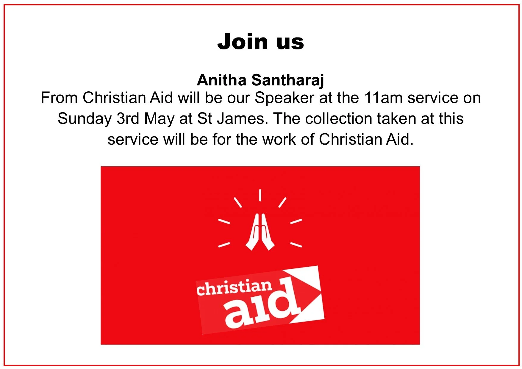 St James is a Church of England Church with a diverse congregation of people of all ages coming from different places, cultures and backgrounds. We meet to worship God and to share in the love He has revealed through Jesus for all people and creation.