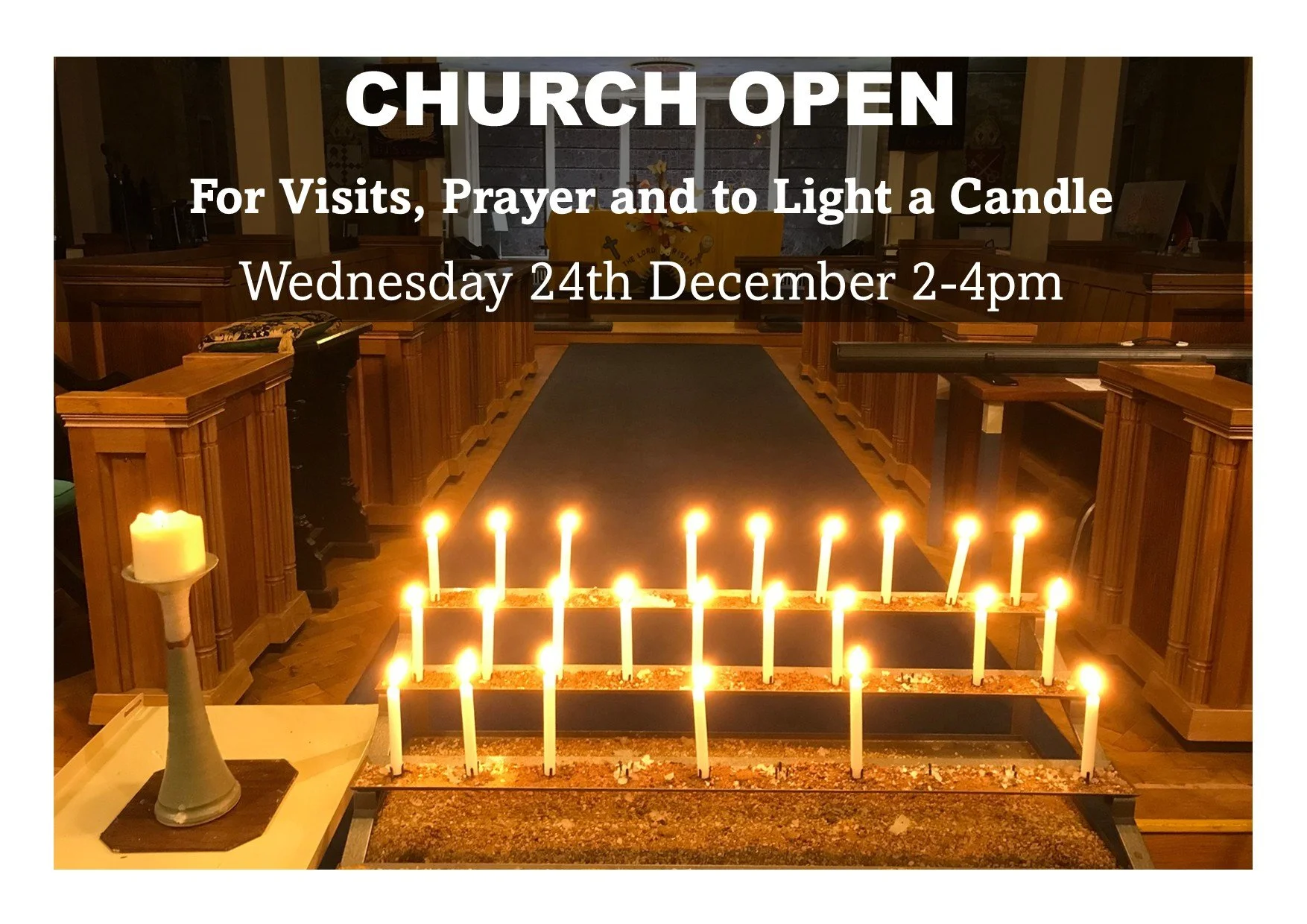 Church Open: 2-4pm Christmas Eve Wednesday 24th December